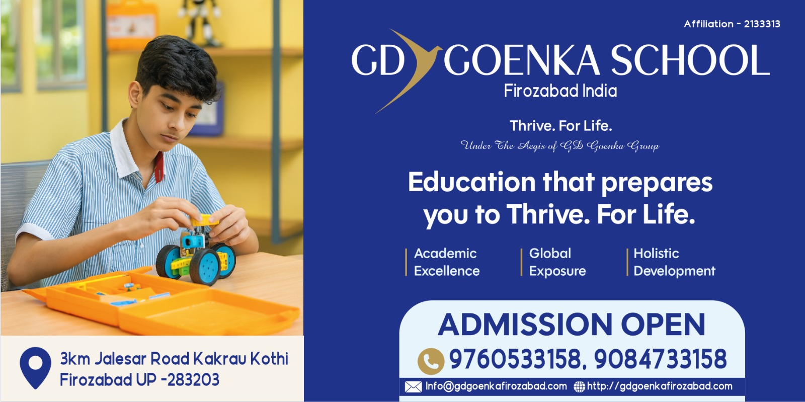 The administration and the staff believe that every student is unique and special like unpolished diamonds, those will shine brightly through the future to their maximum potential after being polished and nurtured here at G D Goenka Public School, Firozabad.